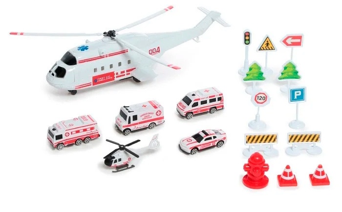 Грузовой вертолёт Службы спасения станет отличным подарком для ребенка. Реалистичный дизайн сделает игру еще более увлекательной. В зависимости от ситуации, может служить как грузовой транспорт или как парковка для техники. Машинки могут передвигаться по вертолету и выезжать по специальному трапу из хвостовой части.