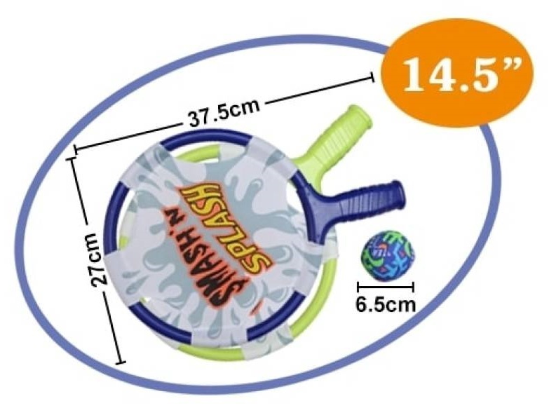 Часы игры (и плескания) для детей с этой теннисной ракеткой/веслом Smash 'n Splash для игры в воде. Эта водная игрушка, которую можно использовать как для игры в бассейне, так и для пляжа, состоит из 2 ракеток и 1 мяча.