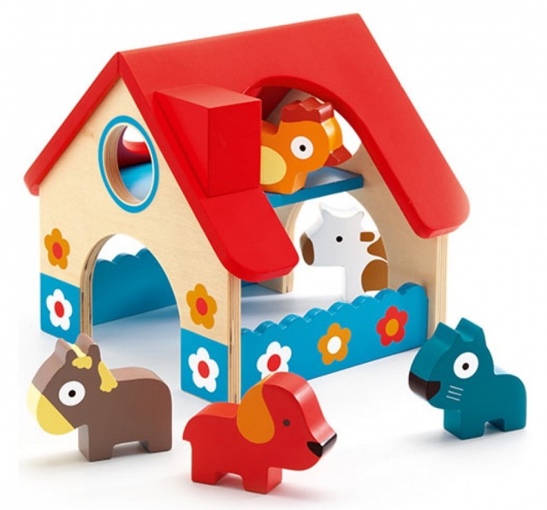 «Ферма» - это еще одна увлекательная игрушка для детей старше восемнадцати месяцев. В ее игровом комплекте малыши найдут один деревянный двухэтажный домик и пять фигурок, выполненных в виде различных деревенских животных (коровки, лошадки, собачки, кошечки и курочки). Домик имеется несколько просторных дверей и окон, который открывают детям доступ к обоим этажам, где они в процессе игры и смогут разместить животных, создавая свои собственные сюжетные истории.