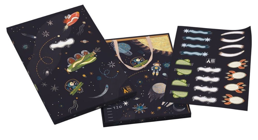 Большая настенная диаграмма на космическую тематику с множеством многоразовых наклеек. Прекрасное дополнение к любой комнате и идеально подходит для измерения роста детей (ростом до 1,4 м). Когда малыши вырастут, из него получится прекрасный подарок на память, спрятанный в красивой коробочке.