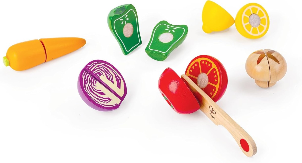 Деревянный игровой набор «Овощи» — вдохновите вашего маленького шеф-повара этим очаровательным и красочным набором овощей для дошкольников. В набор входят шесть овощей: красная капуста, морковь, помидор, лимон, зеленый перец и гриб. Дети будут с удовольствием играть в приготовление еды, как будто они готовят настоящее блюдо. Самоклеящиеся вкладки издают реалистичный хрустящий звук, когда игрушечный нож разрезает деревянные овощи, что доставит вашим малышам массу удовольствия. Упаковка служит и как сумка для покупок, позволяя детям сначала воображать поход на фермерский рынок, а затем готовить свежий «обед» для стола!