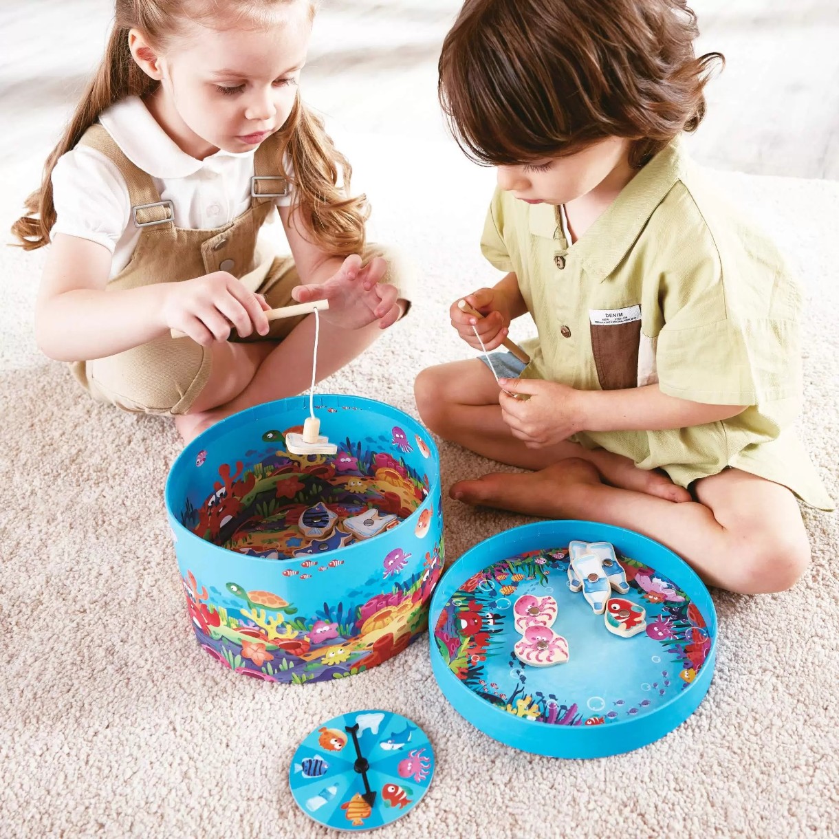 Комплектация2 удочки, круг со стрелкой, 12 морских обитателей (с магнитной вставкой), мусор (бутылки, пакеты) - 6 шт., коробка-цилиндр
