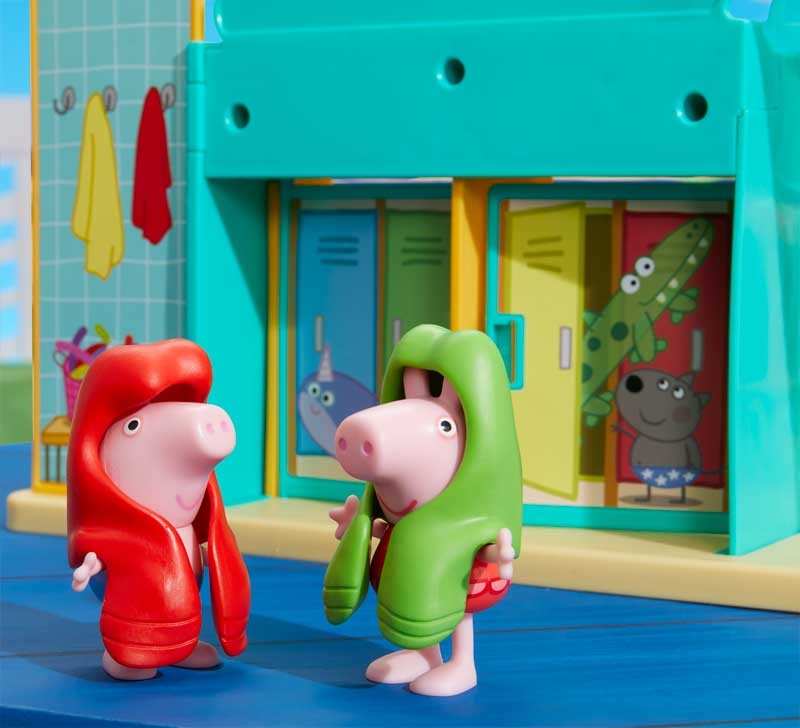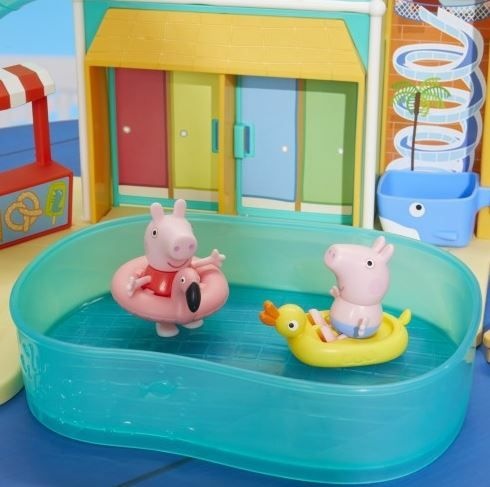 Окунитесь в веселье с игровым набором Peppa's Waterpark Playset! Дети могут представить себе день в аквапарке с любимыми персонажами Peppa Pig. Начните с того, что пройдите через двери со стороны раздевалки игрового набора на террасу у бассейна! Поднимитесь на лифте в форме кита на второй этаж, затем скатитесь с горки на надувном круге в виде фламинго! Окунитесь в бассейн, затем сделайте вид, что вытираетесь одним из надеваемых аксессуаров для полотенец, прежде чем съесть мороженое в снэк-баре! Входящие в комплект фигурки Джорджа и Пеппы одеты в купальные костюмы, поэтому дети могут воссоздать сцены из программы или придумать свои собственные приключения. Эти игрушки Peppa для девочек и мальчиков от 3 лет станут отличным подарком для детей, которые любят программу.