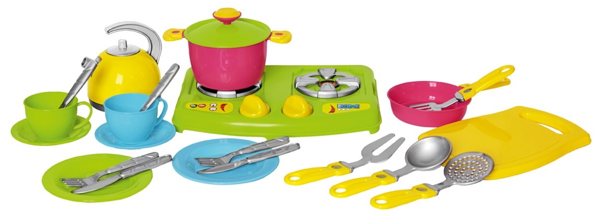 Игрушка «Набор посуды ТехноК» непременно понравится малышам за интересную комплектацию и приятные цвета. Игрушечный набор посуды в яркой чемодане с прозрачной крышкой и удобной ручкой. Одновременно чемодан является газовой плитой. На ней малыш сможет приготовить вкусные блюда для игрушечных друзей и угостить их чаем.