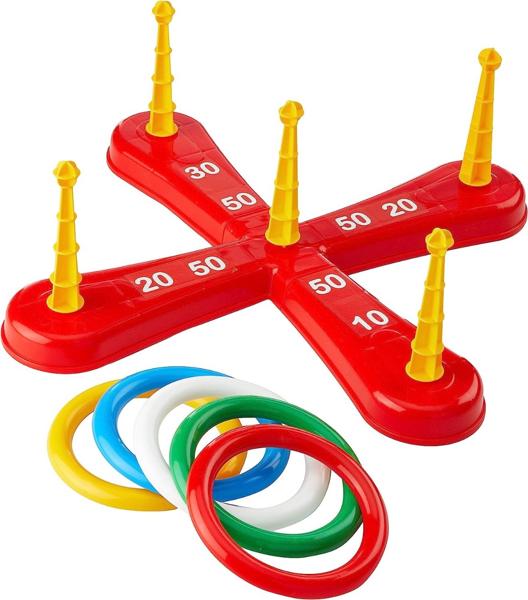 Перед началом игры необходимо собрать крестообразную основу и вставить в отверстия стержни, на которые набрасывают кольца. Числа 10,20,30,50 возле каждого стержня - это количество баллов, которые набирает игрок при набрасывании кольца на соответствующий стержень. Победителем становится тот, кто набирает большее количество баллов.