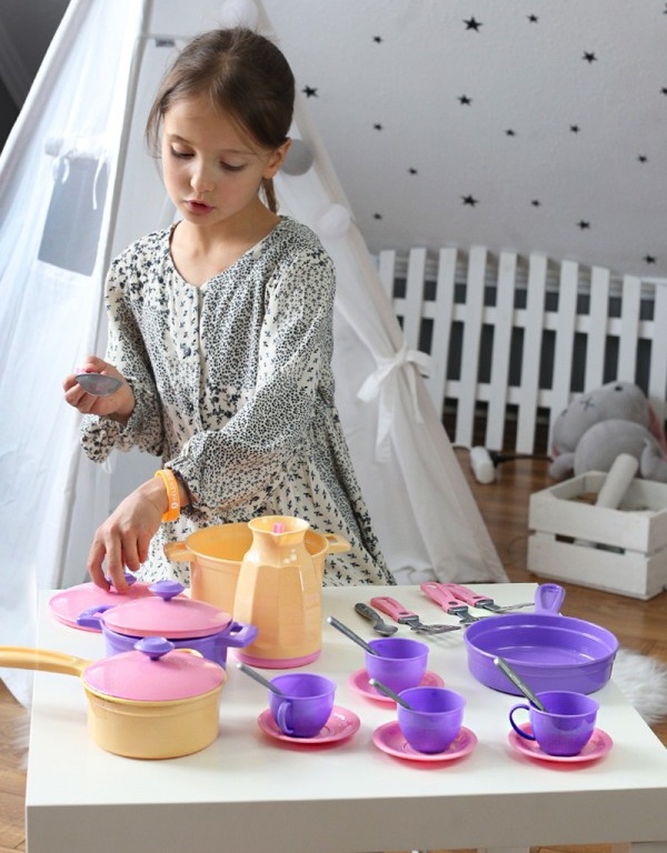 Такие сюжетно-ролевые игры помогут Вашим детям проявить гостеприимство, приучат соблюдать порядок и быть аккуратными. С игрушечным посудой дети изучают основы сервировки стола и кулинарии. Игры развивают координацию, воображение и мышление.