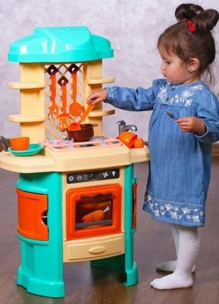 Лучше всего это наблюдать в темной кастрюльке с прозрачной крышкой. Ваше внимание привлечет цветовое решение игрушечной кухне. В новинке мы решили отказаться от классической, для таких игрушек, розовой гаммы. Сочетание спокойных кремового и бирюзового, по мнению дизайнеров, лучше всего передает домашний уют настоящей кухни. Такое цветовое решение будет отвечать не только мечтам маленьких хозяек, а и будущих шеф-поваров. И, кто знает, возможно эта кухня станет для малыша первым шагом в увлекательный мир современной "высокой кулинарии». В наборе вместе с игрушечной кухней вся необходимая посуда для приготовления вкусных блюд.
