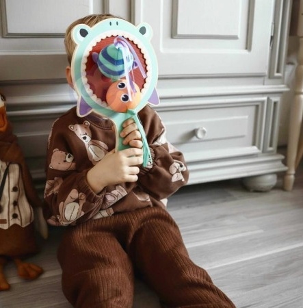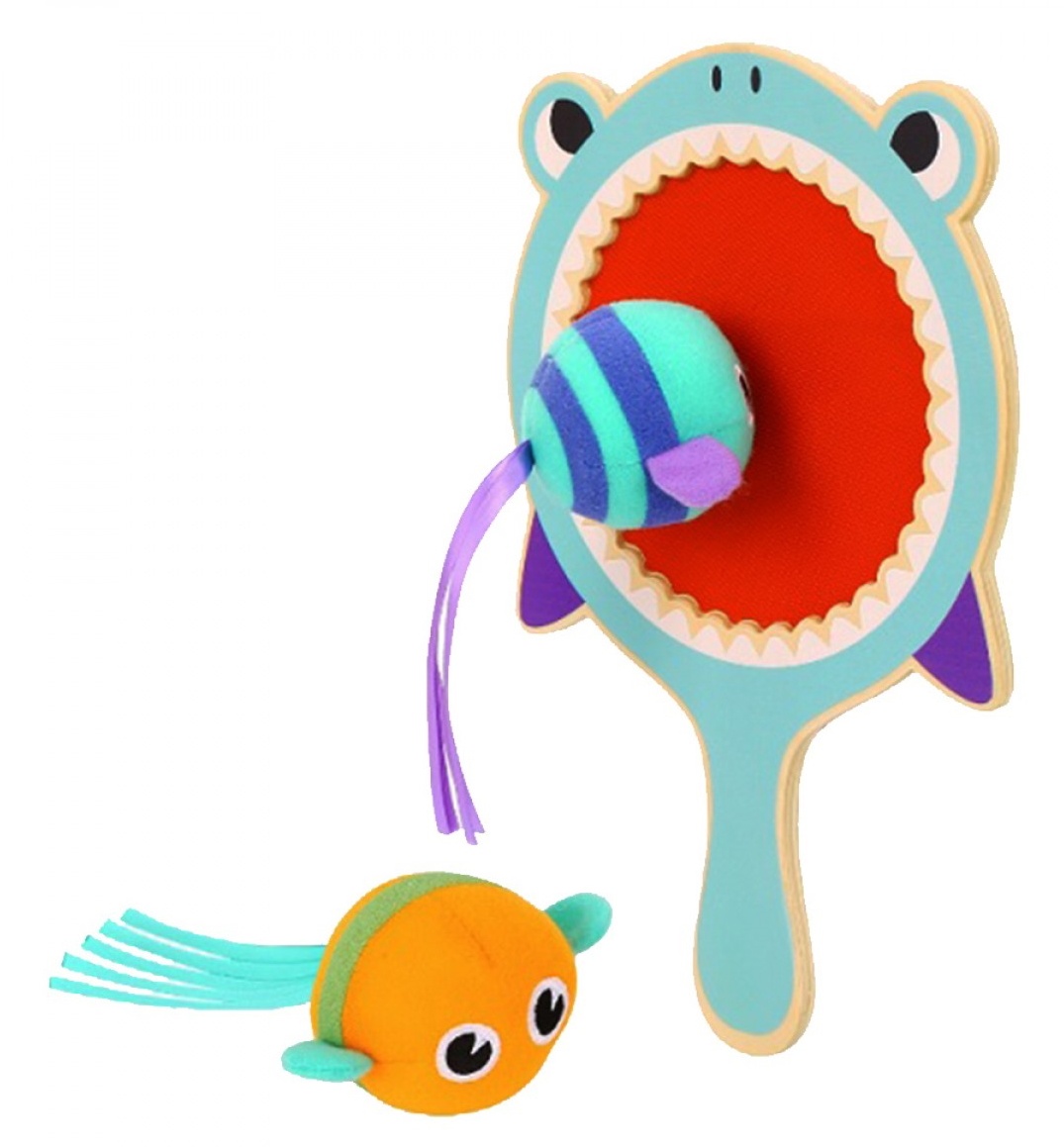 В набор входит ракетка в форме акулы и 2 разноцветные рыбки. Игрушка рассчитана на маленькие ручки ребенка.