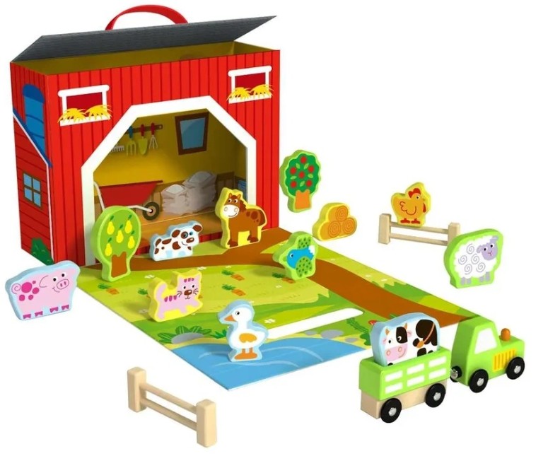 Веселый чемоданчик, который превращается в ферму со своими 9 персонажами , маленьким трактором и 5 деталями фермерской тематики, с которыми малыши будут весело проводить время придумывая интересные игры. С данным набором можно играть в сюжетные игры, использовать фигурки в других наборах. Такие игры способствуют развитию у ребенка мышления и воображения. Играя, ваш малыш знакомится с новыми предметами, пополняет словарный запас.
