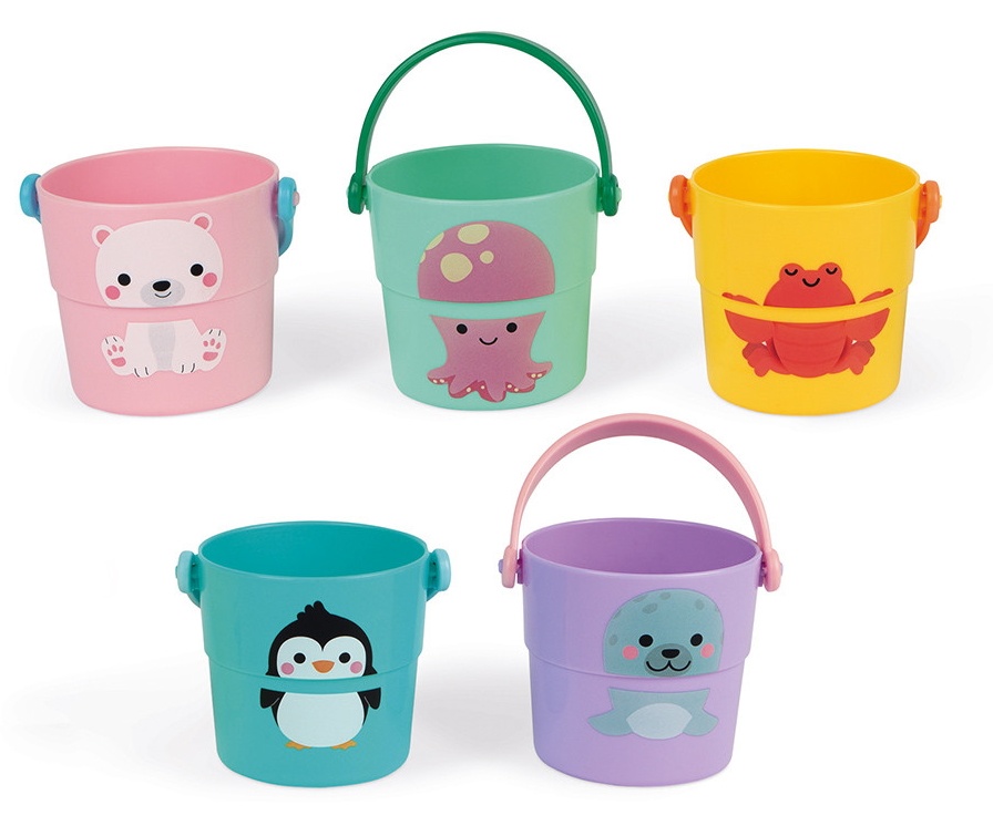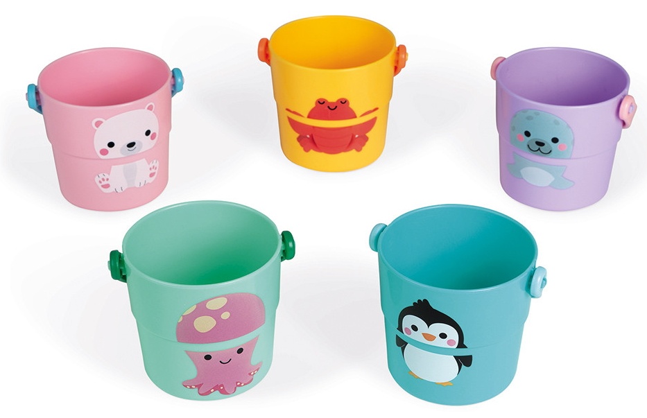 С этими 5 ведерками для занятий ваш ребенок будет часами играть в ванне. Наполните ведра водой или пеной и поднимите их как можно выше, чтобы посмотреть, как вода течет через разные отверстия.