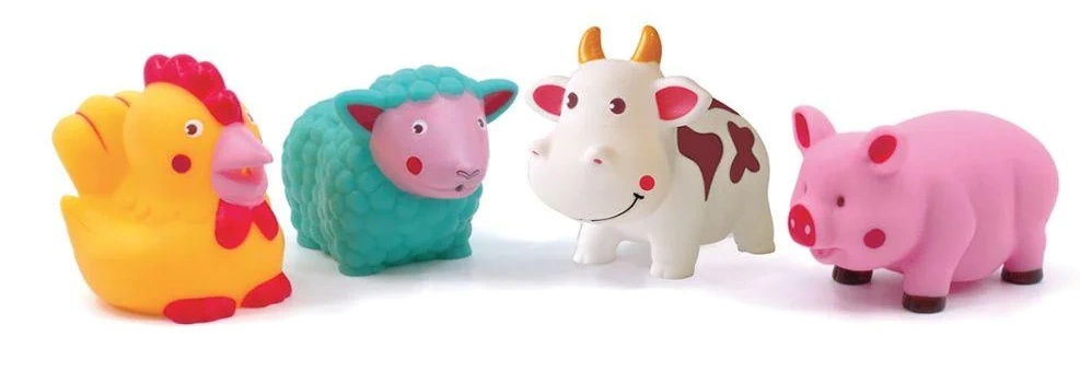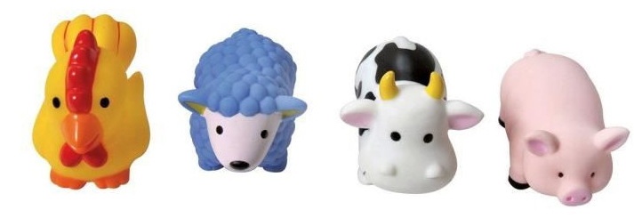 В наборе 4 домашних животных: овца, поросенок, корова и курица.
