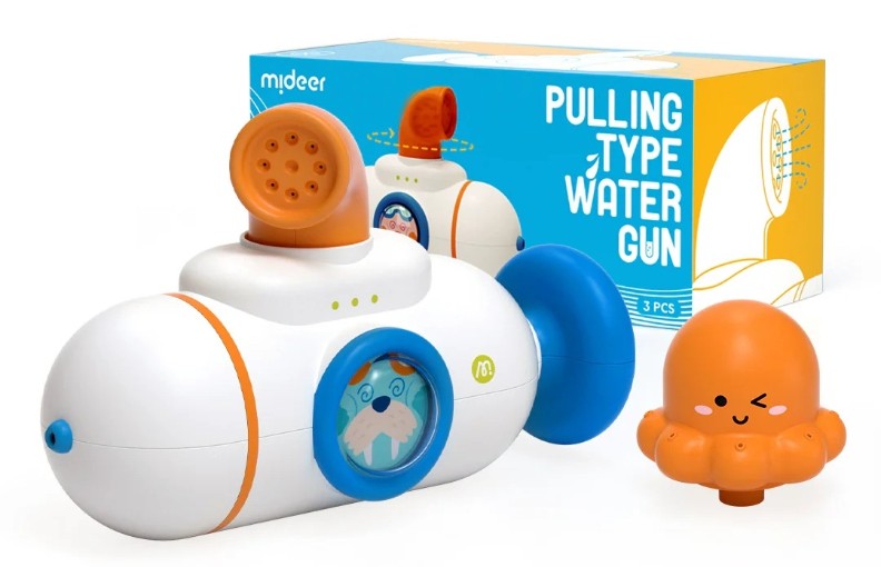 Польза для ребенка: Игрушка «Подводная лодка» способствует развитию мелкой моторики и координации рук и глаз, помогая ребенку научиться манипулировать водяным пистолетом и насадками. Игры с водой стимулируют креативность и способствуют исследовательской деятельности, развивая навыки решения проблем. Водяной пистолет идеально подходит для активных игр на улице, а также превращает купание в приятный и беспечный процесс. Благодаря безопасному дизайну и нетоксичным материалам игрушка подходит для использования маленькими детьми.