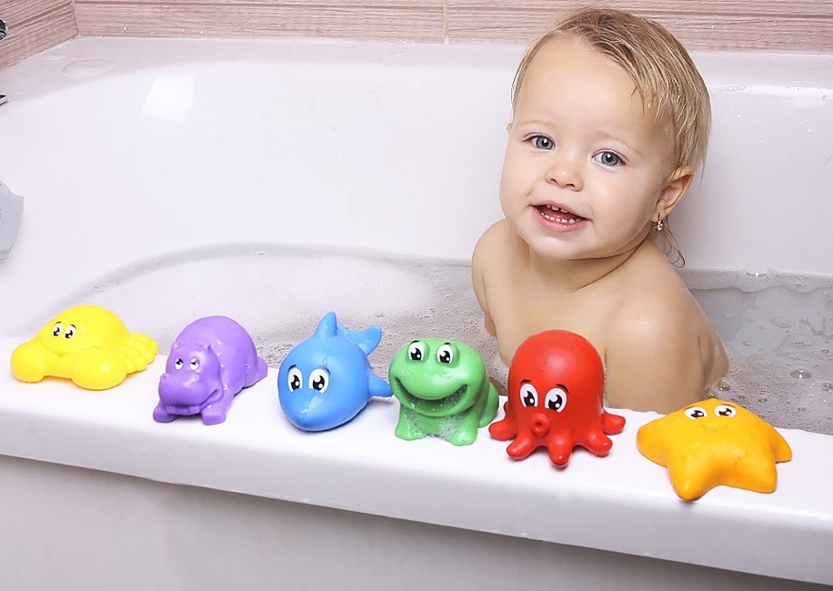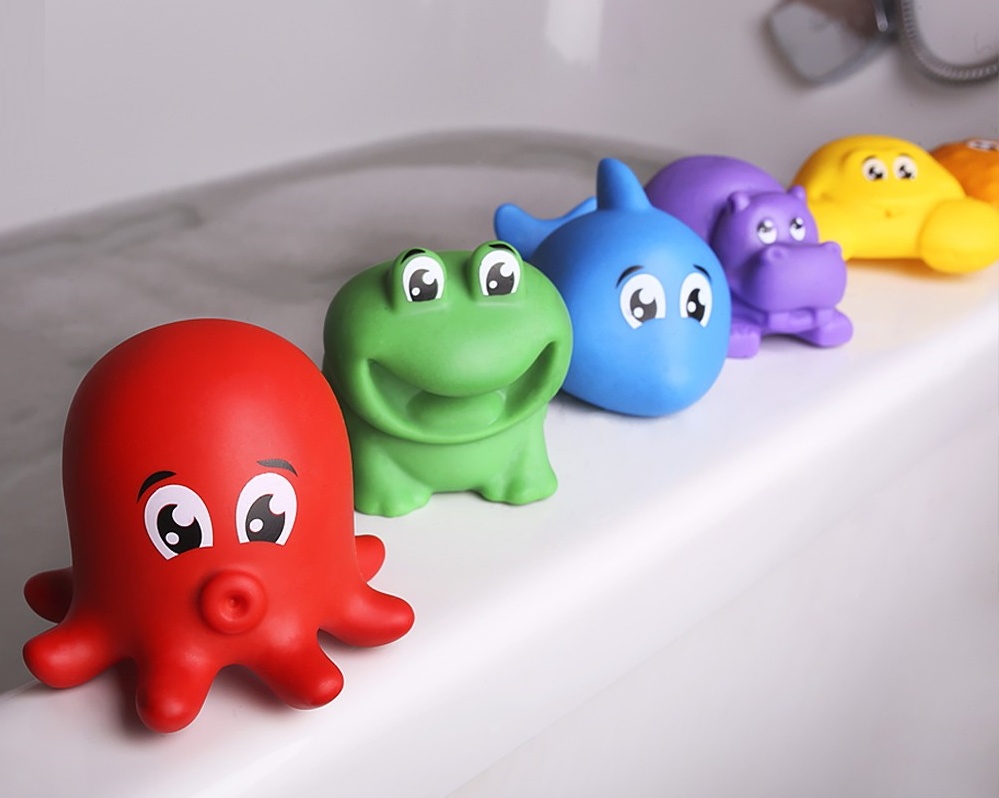 В "Наборе для ванной ТехноК" - милые представители водного мира: акула, осьминог, морская звезда, бегемотик, лягушка и краб. Напечатанные глаза методом тампопечати добавляют игрушкам радостных эмоций и красоты, с ними звери будто оживают. Зверушки отлично держатся на воде, что позволяет детям придумывать разнообразные игры.
