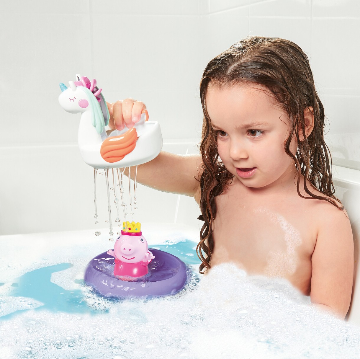 Получите бесконечное количество веселья во время купания с надувным кругом для купания Peppa Princess от Toomies, подходит для детей от 18 месяцев. Пеппа качается на надувном круге в виде единорога с милой короной.