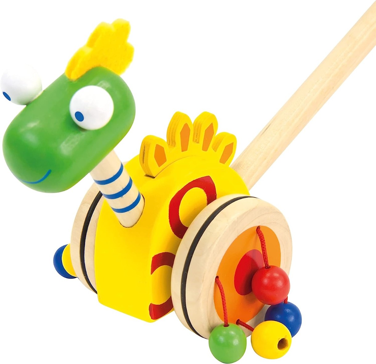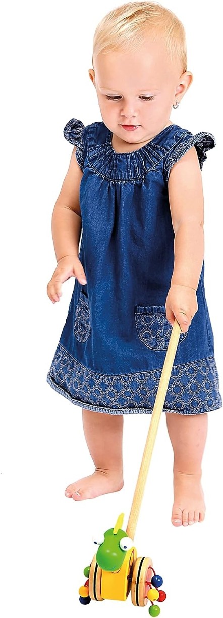 Каталка, которую ваш ребенок может толкать перед собой, поможет ему развить моторику. Дети учатся различать цвета и животных. Высококачественная деревянная игрушка для длительного использования в дизайне для малышей. Замечательный подарок для вашего ребенка, веселый и милый.