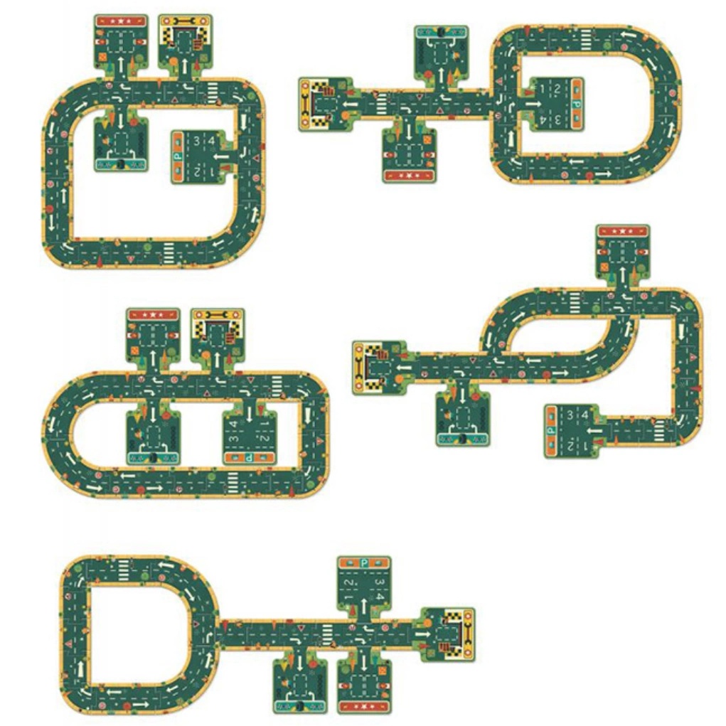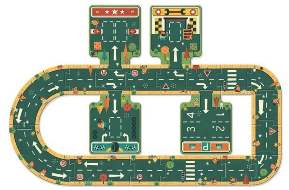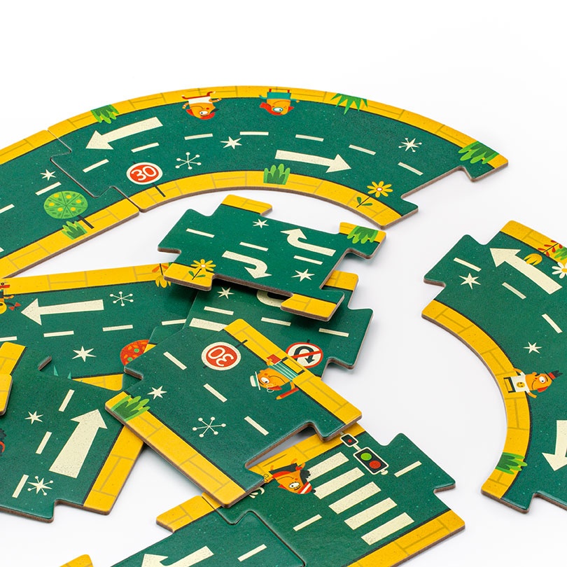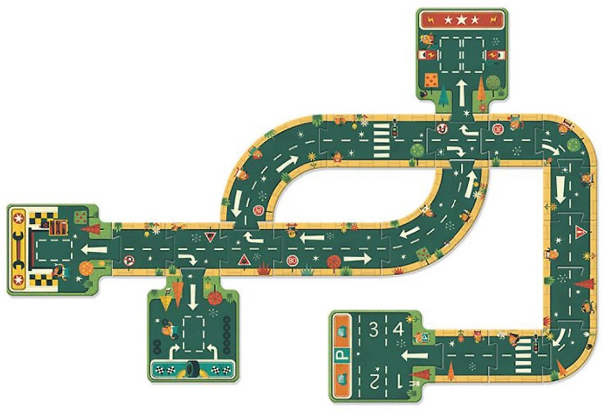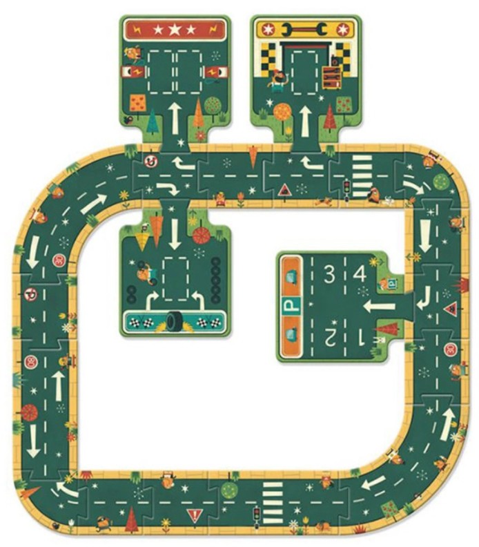 Огромная головоломка, состоящая из 21 части, позволяет составлять разные схемы и играть с собственными транспортными средствами.