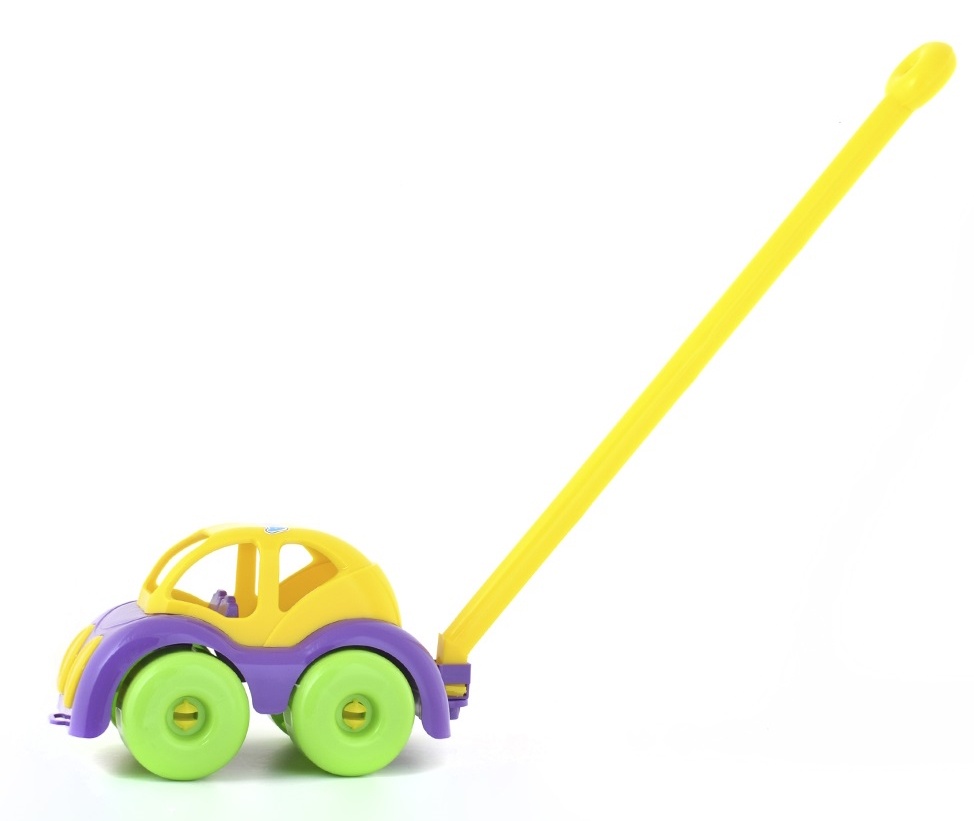 Игрушка-каталка с палкой, позволяет незаметно, в игре, малышу учится владеть своим телом, увереннее шагать, наклоняться и держать равновесие.