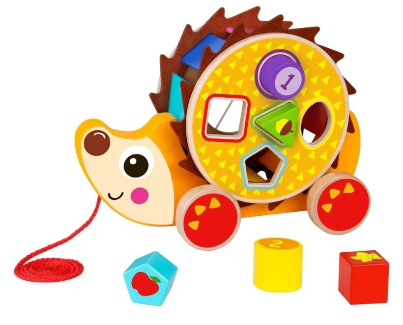 Каталка "Еж" предназначена для игрового развития малыша, как в интеллектуальном, так и в физическом плане. По своей форме каталка напоминает силуэт ежа, внутри круг с пятью разноцветными геометрическими фигурками. Игра с каталкой развивает координацию движений, учит логике, а также стимулирует зрительное и звуковое восприятие.
