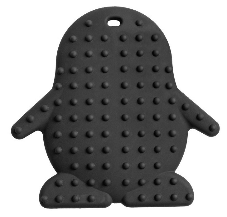 Силиконовый прорезыватель снимает боль при прорезывании зубов. Поверхность особой формы обеспечивает легкий массаж десен. Легко схватить и держать маленькими ручонками. Его можно хранить в холодильнике, благодаря чему он успокаивает больные места. Прорезыватель имеет отверстие, которое позволяет прикрепить его к кулону.