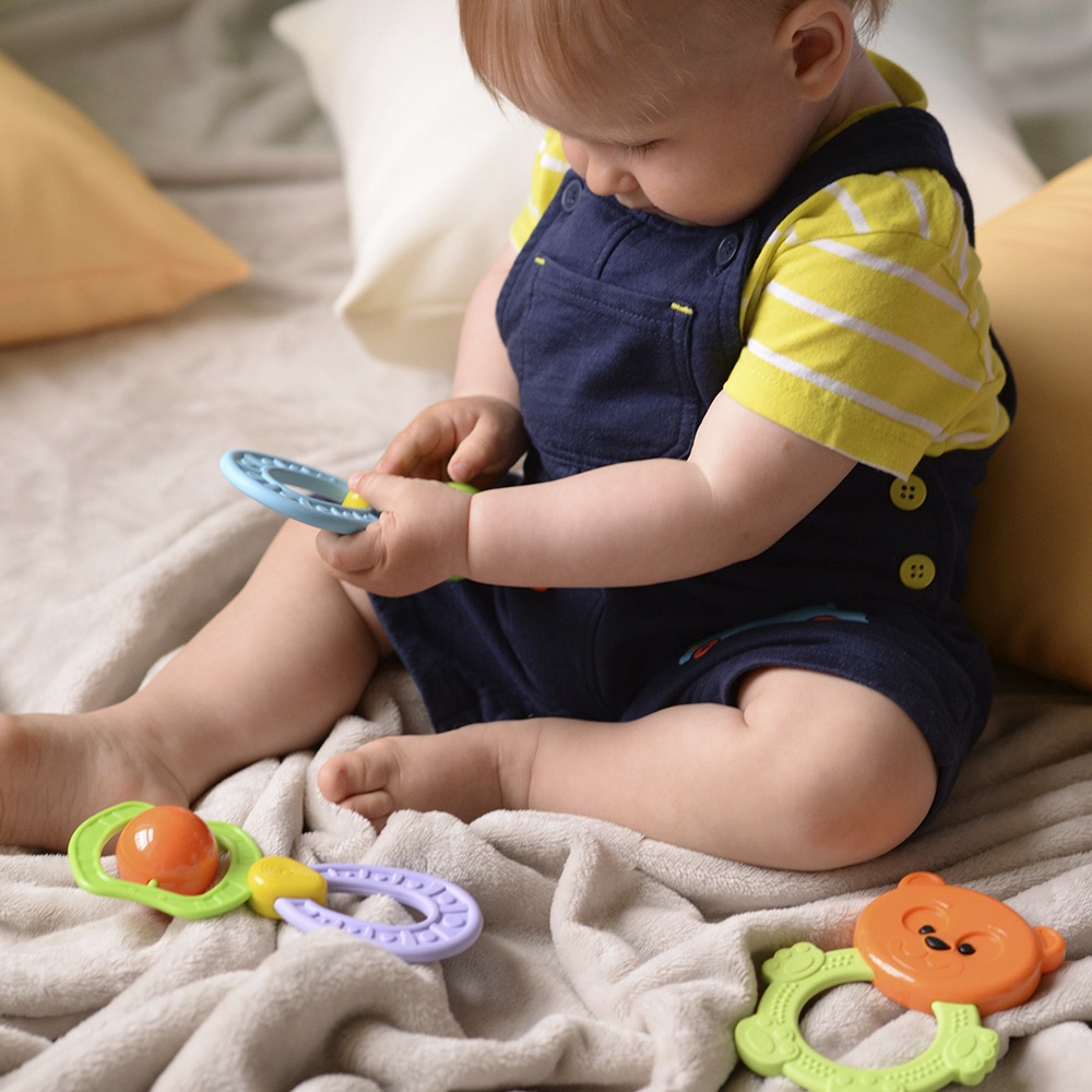 Универсальная погремушка-прорезыватель "Сатурн" с массажными рельефными бугорками для массирования десен и сенсорной стимуляции пальчиков малышей - прекрасный подарок крохе! Игрушка легко моется, имеет деликатный уровень шума и абсолютно безопасна. Погремушка изготовлена из материалов, сертифицированных для производства предметов личной гигиены и изделий, имеющих контакт с пищевыми продуктами. Высокое качество материалов и разнообразные цветовые решения гарантируют успех игрушки у малышей.