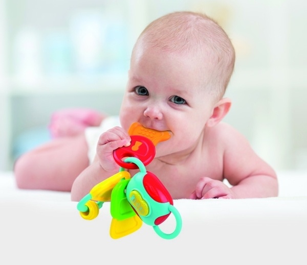 В комплект входят 3 прорезывающих элемента в виде ключиков, которые помогут заживить десны.