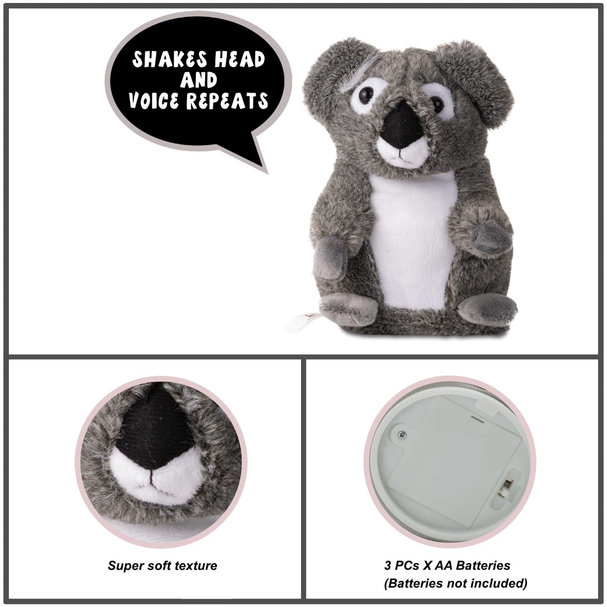 Милая, маленькая игрушка коала - это отличный способ надолго увлечь детей веселым и интерактивным занятием. Эта очаровательная и забавная плюшевая игрушка станет прекрасным подарком для любого любителя животных, малыша и ребенка. Игрушка коала не только мягкая и плюшевая, она еще и двигается и повторяет ваши слова! Эта забавная коала - один из лучших подарков для ваших малышей!