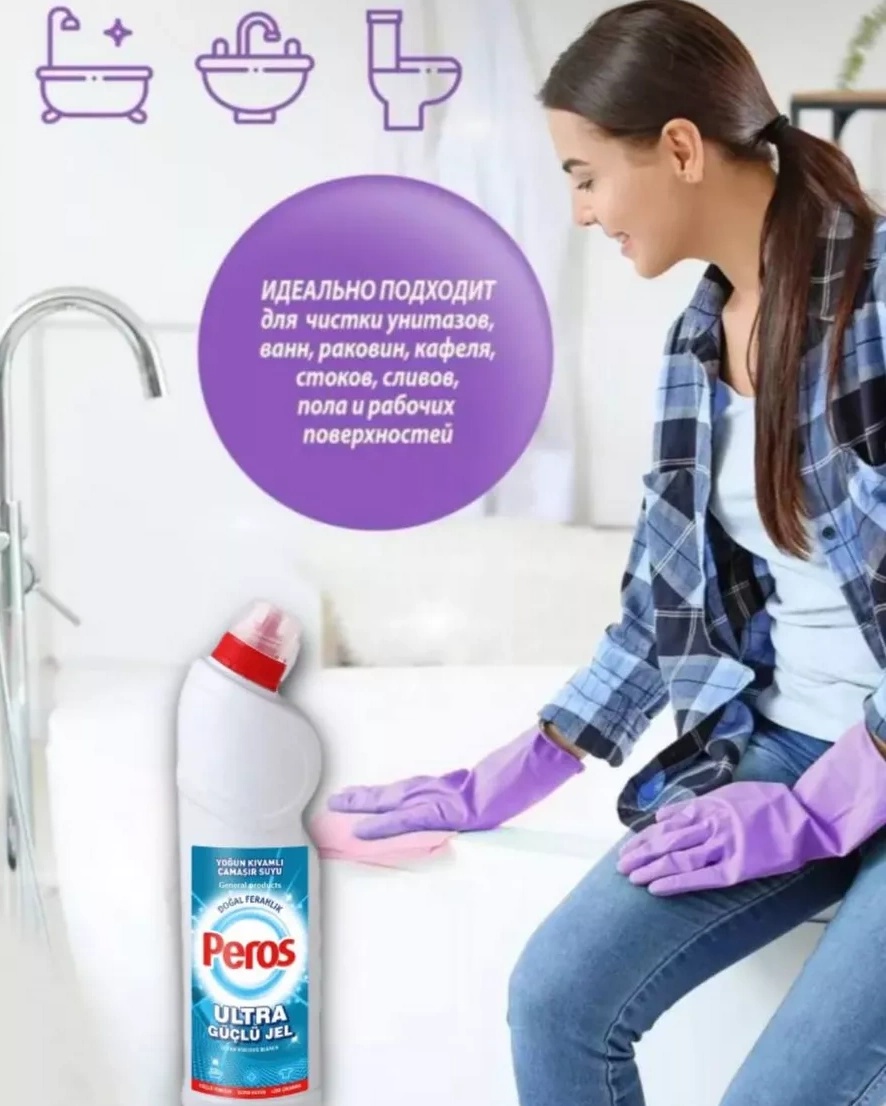 Peros Ultra Natural Freshness 750 ml- высококонцентрированный отбеливатель с густой формулой, который обеспечивает глубокую очистку и гигиену в доме. Он эффективно удаляет стойкую грязь, пятна и микробы с поверхностей, придавая помещению длительное ощущение натуральной свежести. Средство подходит для использования в ванной комнате, на кухне, на плитке, в туалете и даже при стирке белого белья (в разбавленном виде). Формула прилипает к поверхности, растворяет загрязнения и оставляет длительный свежий аромат после уборки, создавая чистую и гигиеничную атмосферу.