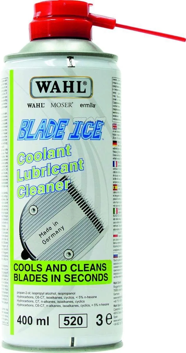 Очищающая и охлаждающая жидкость Wahl Blade Ice 4 в 1 разработана для ухода за ножами машинок для стрижки волос или шерсти. Спрей мгновенно охлаждает, очищает и защищает лезвия от коррозии. Средство дает смазывающий эффект при нанесении во время стрижки. Состав «Блейд Айс» применяют для ухода за режущими комплектами парикмахерских или грумерских машинок и триммеров.