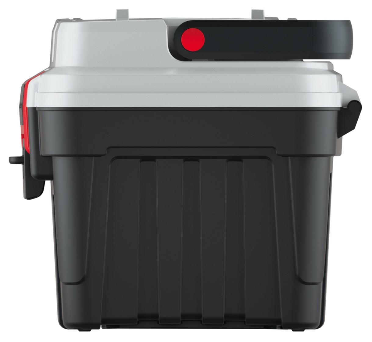 — Крышку полность открытого ящика можно подпереть с помощью алюминиевой ручки, превращая ящик в рабочую площадку
