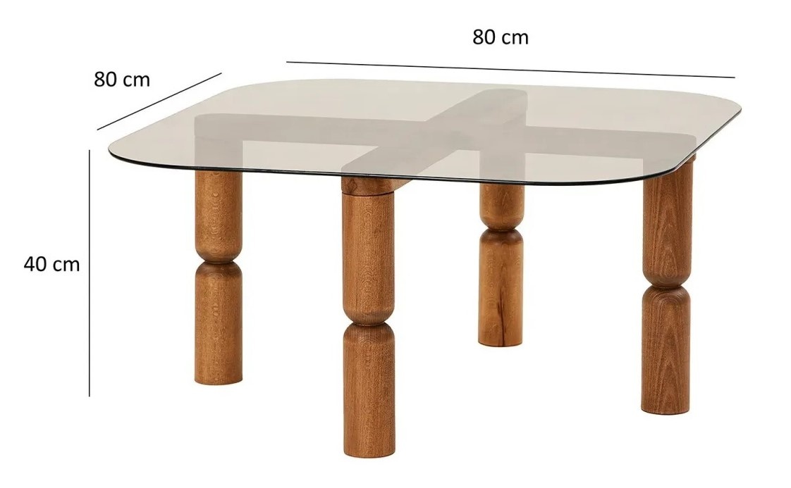 Благодаря ширине 80 см, высоте 40 см и глубине 80 см столик сочетает функциональность с эстетикой. Просторная поверхность подходит для книг, журналов или декоративных предметов, при этом компактные размеры позволяют легко разместить его в любой комнате.
