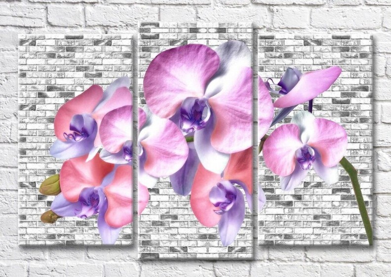 Картина Magic Color Branch of Lilac orchid on a brick background (3565188)