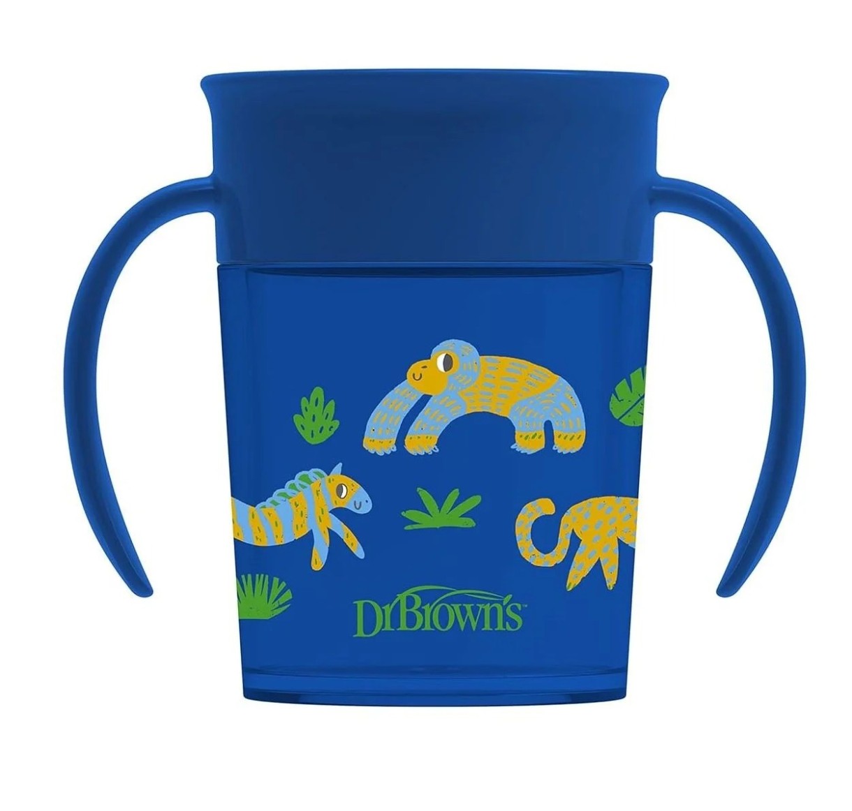 - Боковые ручки легко захватываются маленькими ручками, помогая ребенку наклонить чашку для питья.