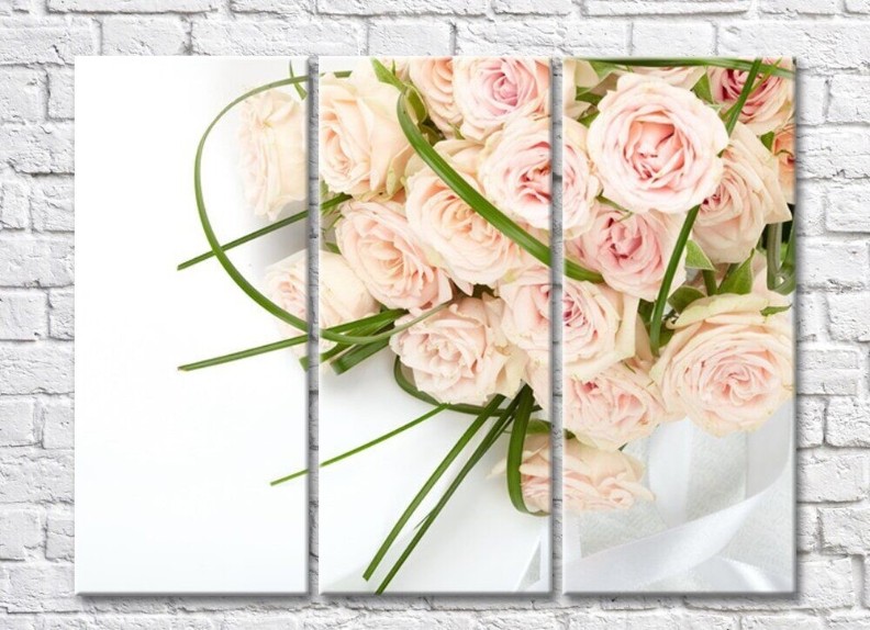 Картина Rainbow Peach roses in a bouquet on a white background (500506)