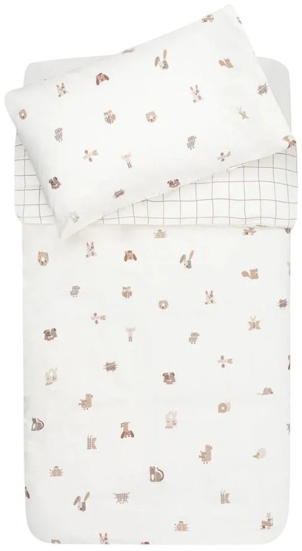 Превратите кроватку малыша в тёплое и радостное пространство с этим очаровательным комплектом от Jollein. Благодаря двустороннему дизайну пододеяльник выделяется игривым принтом Animal Friends на нежном кремовом фоне, а оборотная сторона добавляет изысканности с помощью клеточного узора в оттенках кремового и тёмно-оливкового цвета.