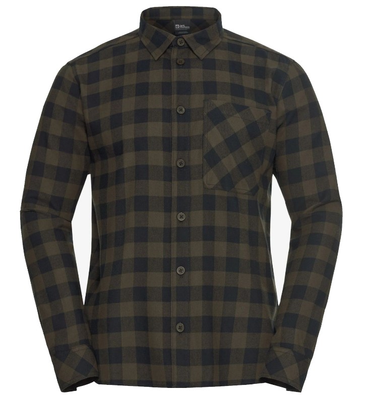 Мужская рубашка Jack Wolfskin Lite Flannel M Check Obsidian Moss, s.S