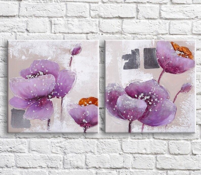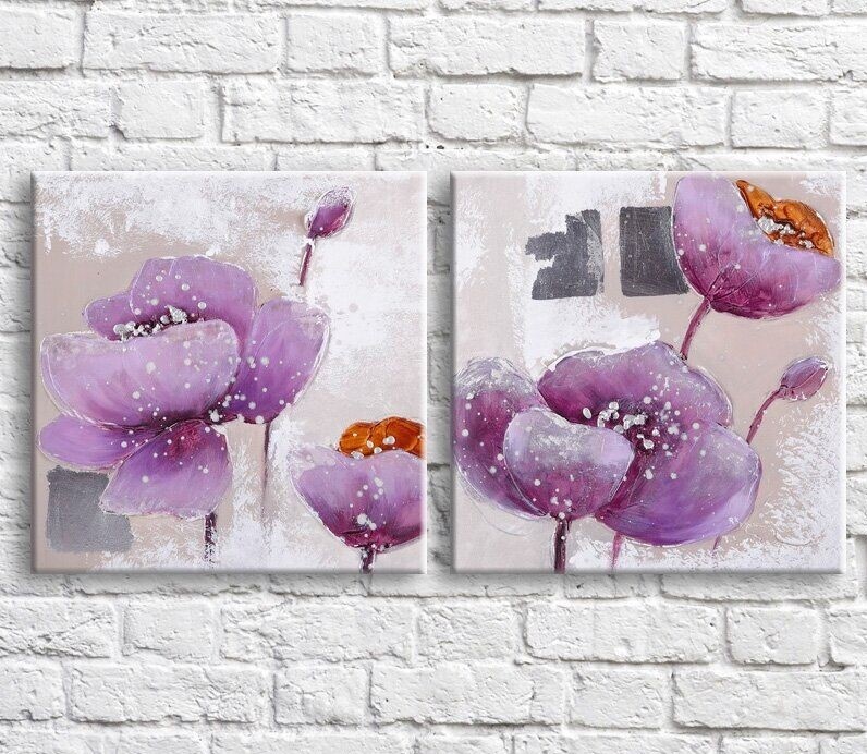 Картина ArtPoster Purple poppies in oil on a Light Gray background (3467800)