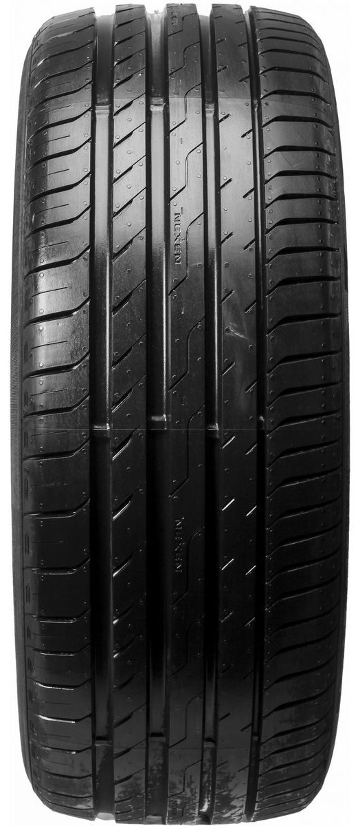 Протекторный рисунок выполнен в несимметричном дизайне, который делит его на две части — внутреннюю и наружную. Это придает шине сбалансированные ходовые свойства без ущерба ни одному из них. Еще одной особенностью рисунка является увеличенный объем продольных канавок и многочисленность дренажных элементов по краям протектора. Такое решение практически исключает риск формирования в пятне контакта сплошной пленки воды, что позволяет контролировать автомобиль даже при сильном дожде.