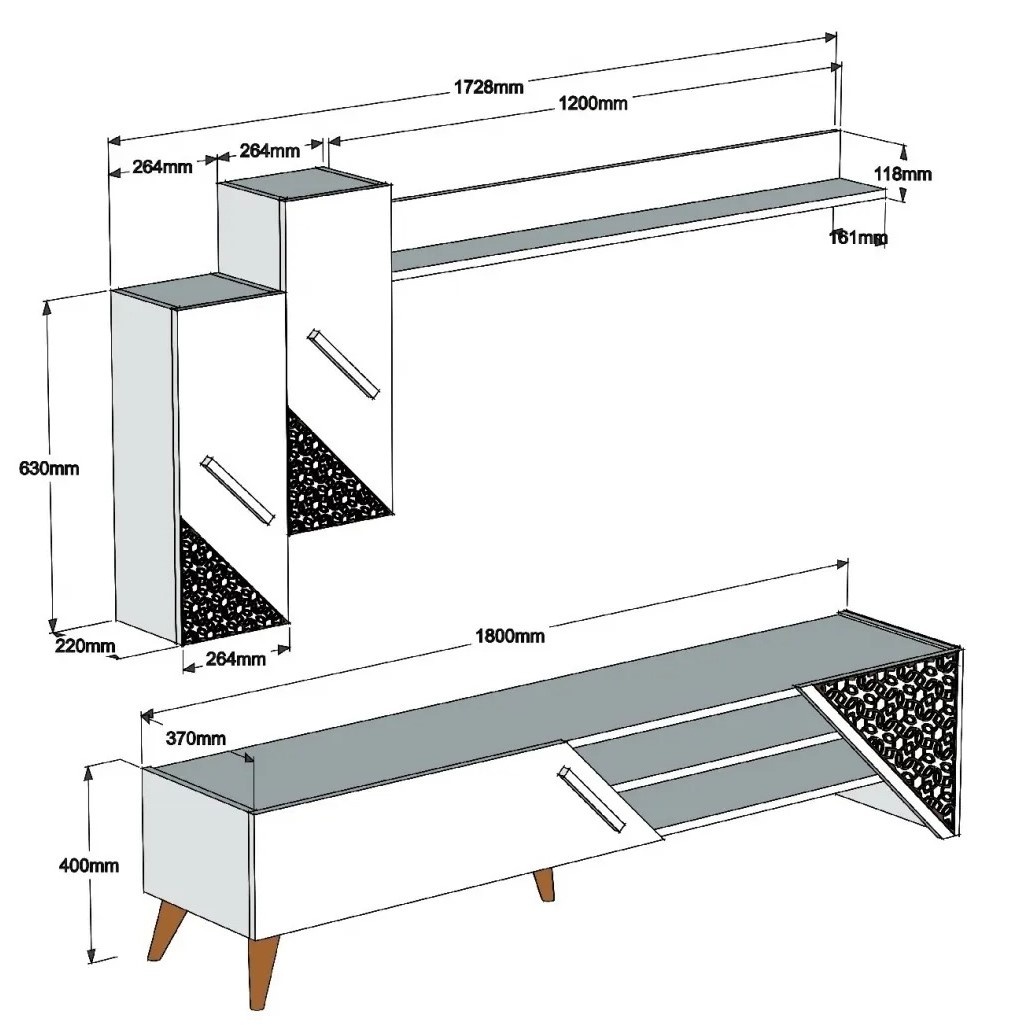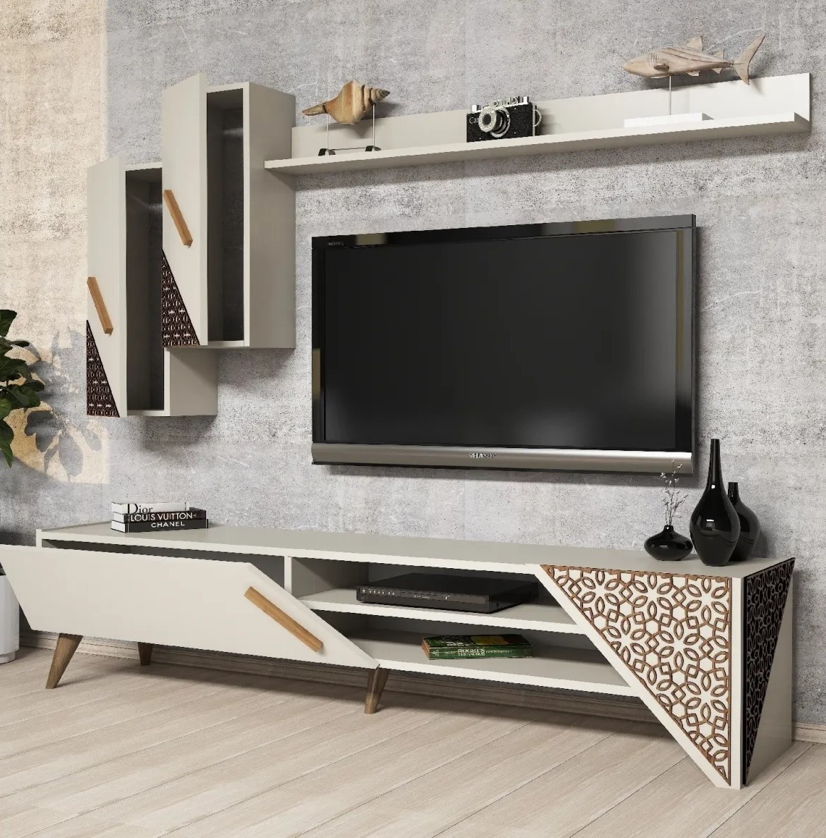 Ощутите идеальное сочетание стиля и функциональности с современным комплектом для гостиной. Изготовленный из древесных плит, покрытых меламином, этот набор создан для долговечности и стойкости к ежедневной эксплуатации. Толщина 18 мм обеспечивает прочность и устойчивость, а декоративная обработка CNC придаёт мебели утончённый вид.