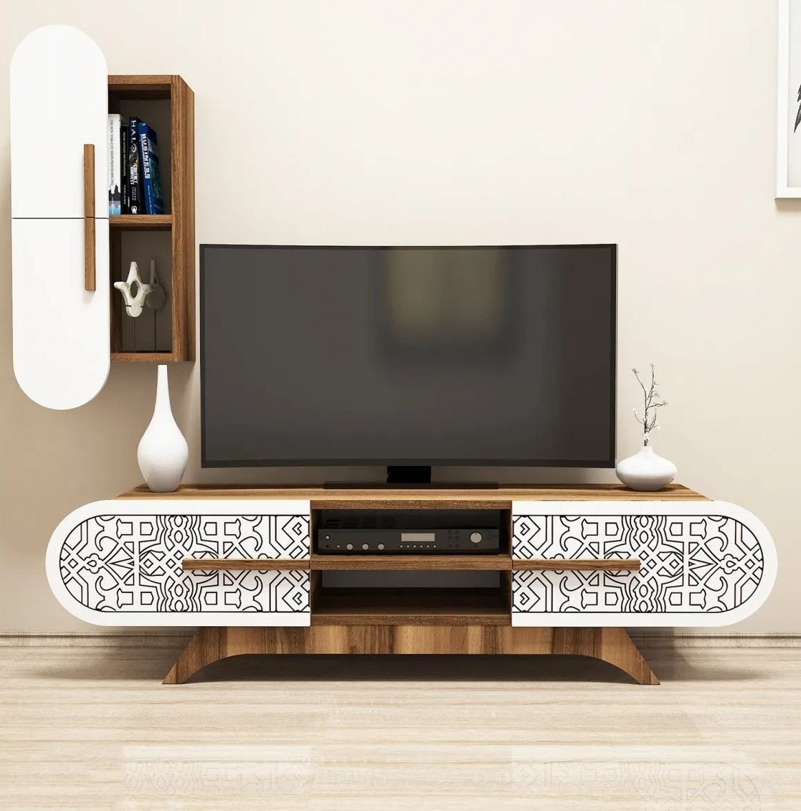 Преобразите гостиную в богемный оазис с этой впечатляющей мебельной композицией. Изготовленная с вниманием к деталям, она добавляет тепла и характера пространству.