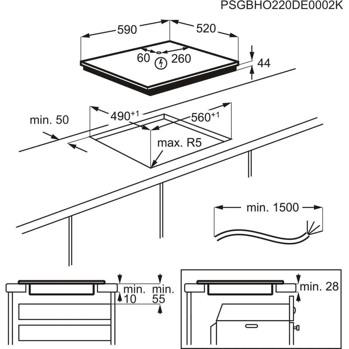 Размеры для встраивания (ШхГ)56х49 см