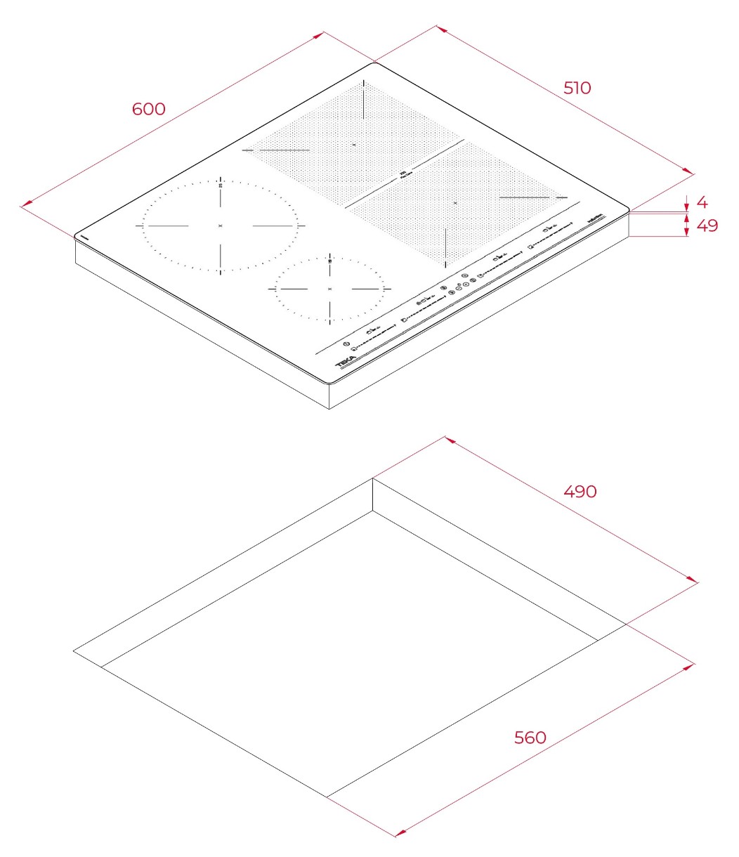 Размеры для встраивания (ШхГ)56x49 см