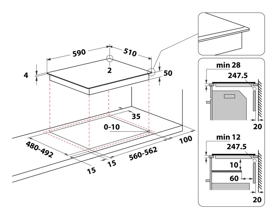 Размеры для встраивания (ШхГ)56x48 см