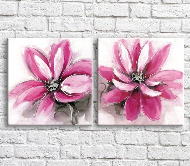 Картина ArtPoster Pink flower oil painting on Black and White background (3467788)