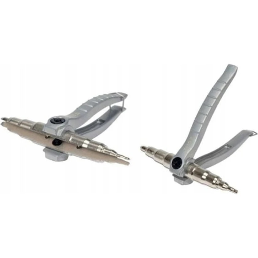 Рукоятка зажима постоянно соединена с расширителем , что позволяет удобно работать одной рукой.