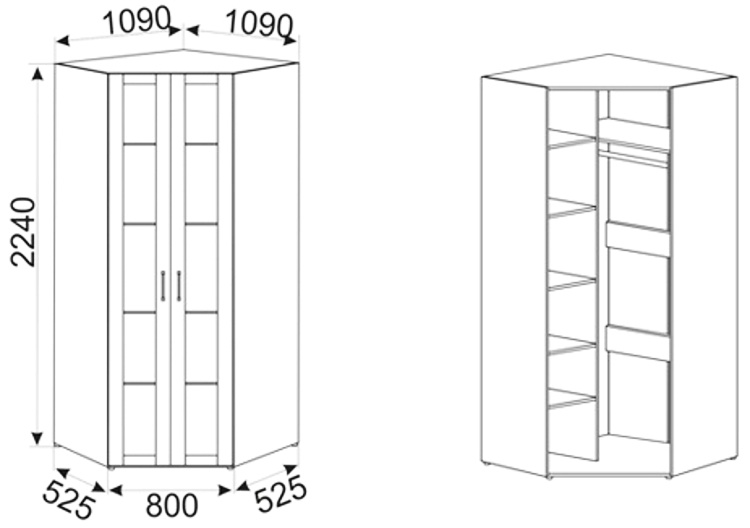 Угловой шкаф Inter-3 является прекрасным предметом мебели для хранения многочисленной одежды, в том числе обуви и сумок. Такой шкаф придает интерьеру практичность и обеспечивает гораздо больше места для хранения. Данная модель с распашной системой открывания очень удобна в ежедневном использовании. Также отлично будет смотреться с другими элементами мебели этой же коллекции.
