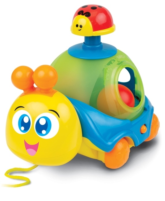 Игрушка содержит 5 разноцветных шариков, которые вращаются внутри раковины улитки. Улитку сопровождают различные песни и забавные звуки.
