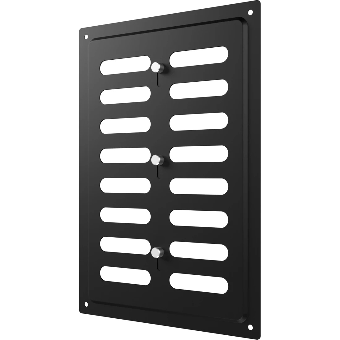 Регулируемая металлическая решетка предназначена для установки в вентиляционный проем, где требуется изменение объема поставляемого воздуха. Решетка изготовлена из стали с полимерным покрытием, устойчива к механическим воздействиям и может размещаться как внутри, так и снаружи помещений. С помощью регулятора на лицевой части решетки возможно изменить объем воздушного потока или полностью перекрыть вентиляционный канал. Регулируемая решетка используется, в том числе, для декоративного оформления вентиляционного отверстия, является элементом интерьера и дополняет общий стиль помещения. Небольшая толщина стали — 0,5 мм — позволяет монтировать решетку практически вровень со стеной, а разнообразие цветов — подобрать оптимальный вариант для любого интерьера. Материал: сталь с полимерным покрытием