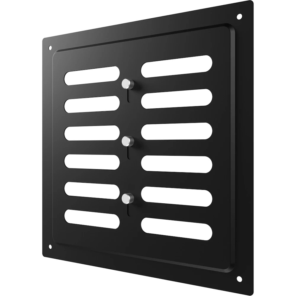 Регулируемая металлическая решетка предназначена для установки в вентиляционный проем, где требуется изменение объема поставляемого воздуха. Решетка изготовлена из стали с полимерным покрытием, устойчива к механическим воздействиям и может размещаться как внутри, так и снаружи помещений. С помощью регулятора на лицевой части решетки возможно изменить объем воздушного потока или полностью перекрыть вентиляционный канал. Регулируемая решетка используется, в том числе, для декоративного оформления вентиляционного отверстия, является элементом интерьера и дополняет общий стиль помещения. Небольшая толщина стали — 0,5 мм — позволяет монтировать решетку практически вровень со стеной, а разнообразие цветов — подобрать оптимальный вариант для любого интерьера. Материал: сталь с полимерным покрытием
