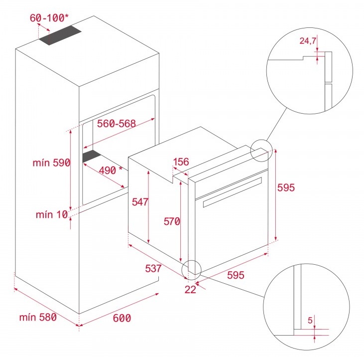 Размеры ниши для встраивания (ВхШхГ)59x56x49 см