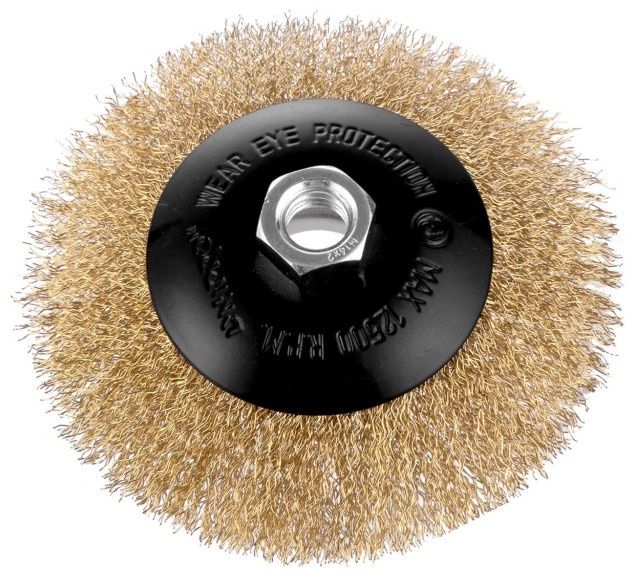 Щетка по металлу Dnipro-M К100-L предназначена для деликатной зачистки небольших площадей металлических поверхностей, имеющих углубление.